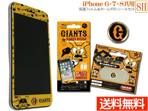 ジャイアンツ公認デザイン 強化ガラス 保護フィルム ホームボタンシール G ロゴ セット iPhone6 7 8 極薄 高品質 ネコポス 送料無料